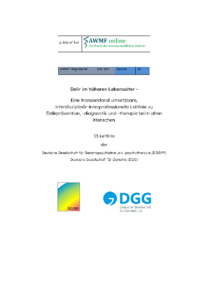 Federführende Fachgesellschaften: Deutsche Gesellschaft für Gerontopsychiatrie und -psychotherapie (DGGPP) Deutsche Gesellschaft für Geriatrie (DGG)